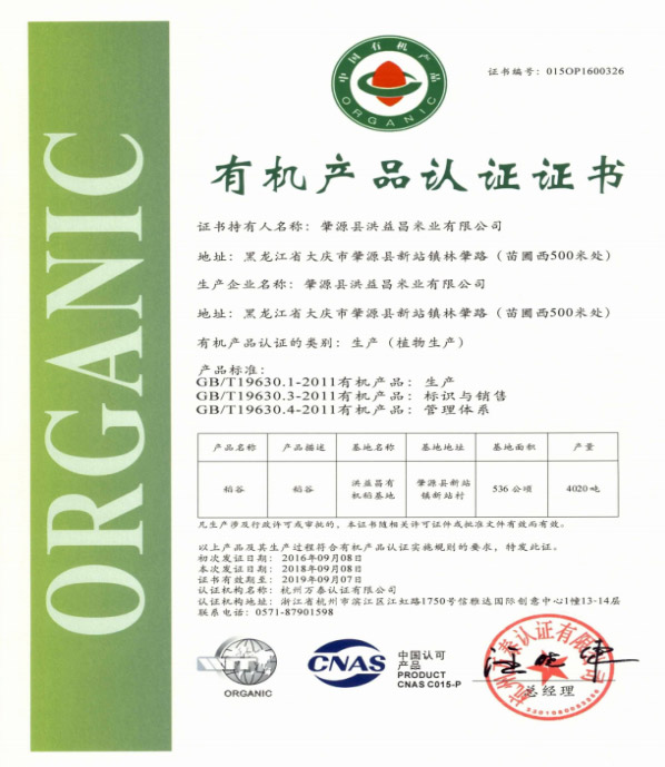 有機(jī)大米基地加工有機(jī)證書